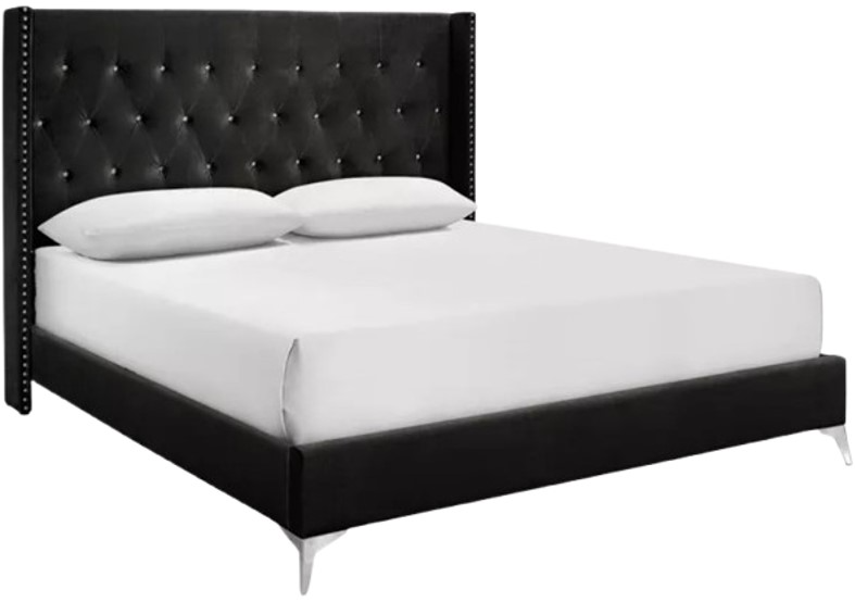 The Huxley has clean lines enhanced with a crystal button tufted headboard with silver studded trim for a touch of luxury and comfort and metallic accents for a modern touch.