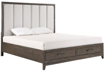 New Classic® Home Furnishings Landon Walnut Queen Upholstered Storage Platform Bed