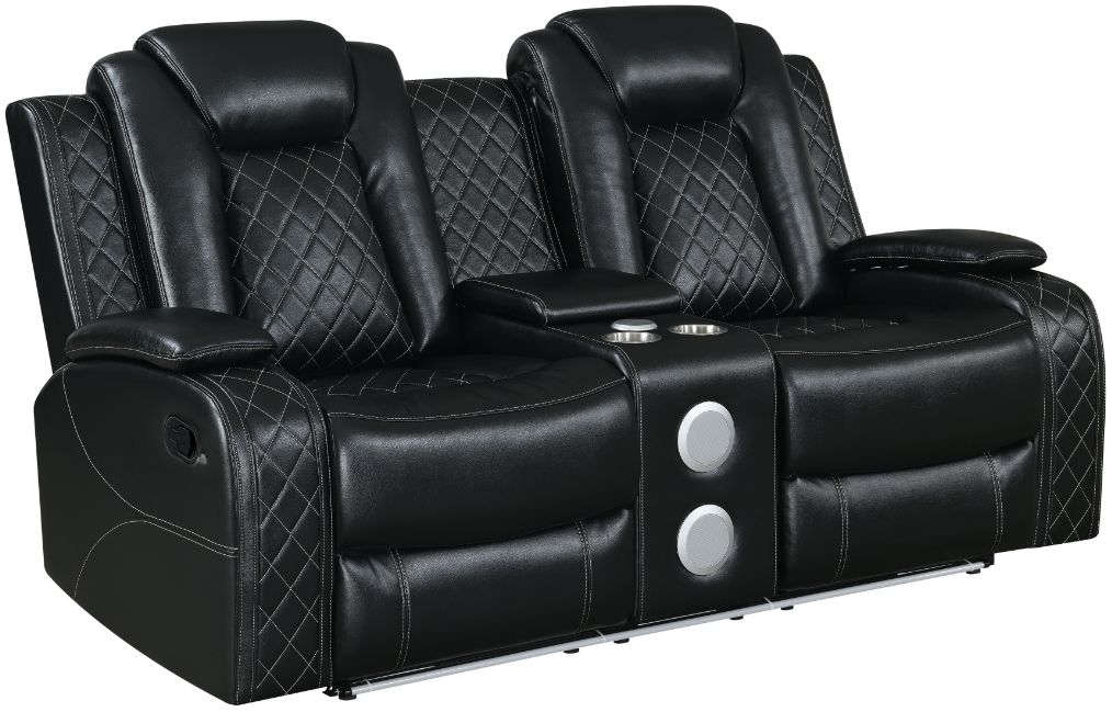 Meet the Orion Console Loveseat, a marvel of durability and comfort designed to elevate your relaxation experience. Crafted with a blend of hardwoods and manufactured wood, its sturdy construction ensures long-lasting strength. Sink into the soft, breathable black upholstery, a luxurious blend of polyester and PU, for a supple feel and cozy seating.Read More