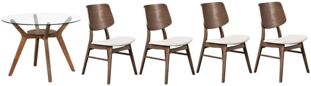 This dining set merges the sturdy resilience of solid Rubberwood, the precision of engineered woods, and the timeless appeal of authentic Walnut veneers. Built to endure, it brings both strength and lasting beauty to your home.