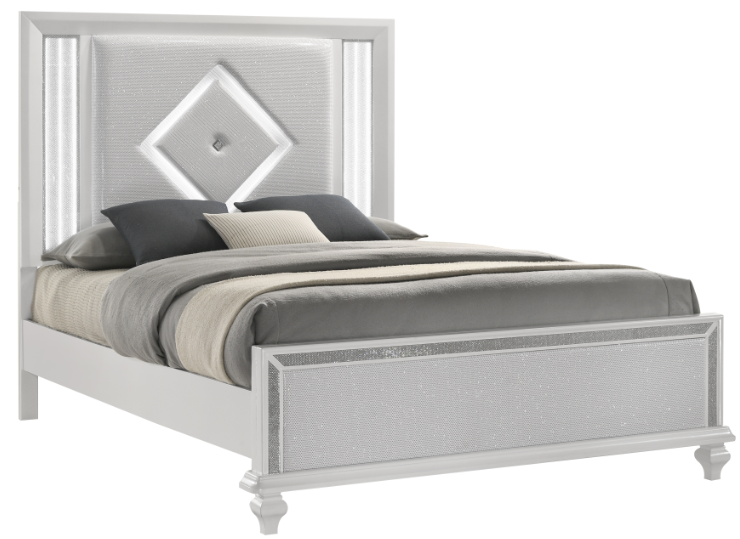 Sleek White Finish: The contemporary white finish is accented with a dose of glam provided by glittery silver accents